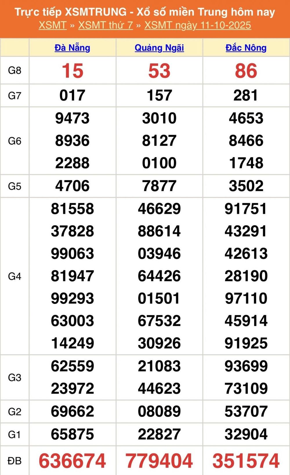 Kết quả xổ số miền Trung (XSMT) hôm nay ngày 11/10
