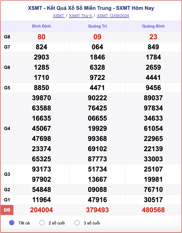 - XSMT 12/9/2024