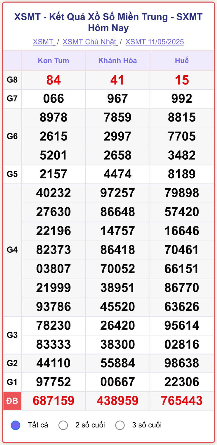 XSMT 11/5, kết quả xổ số miền Trung (KQXSMT) ngày 11/5/2025.