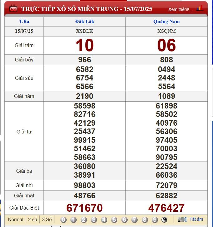 Kết quả xổ số miền Trung (XSMT) hôm nay ngày 15/7