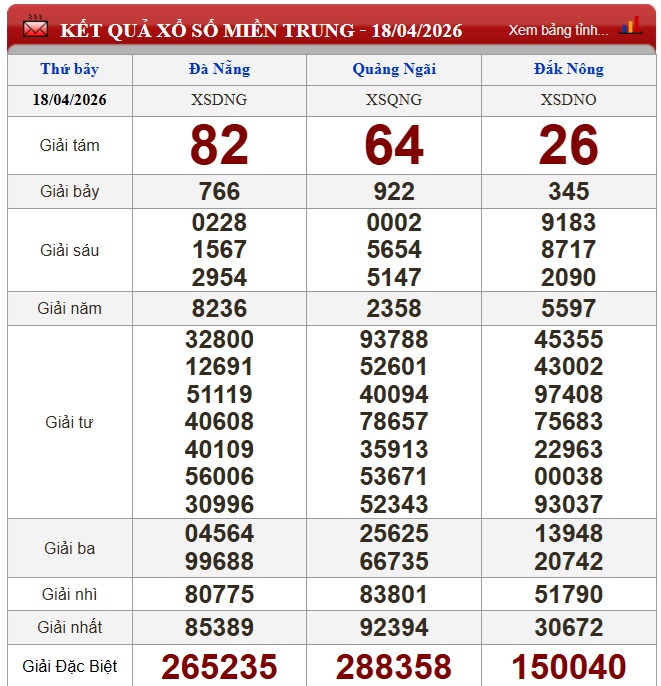 Kết quả xổ số miền Trung ngày 18/4/2026