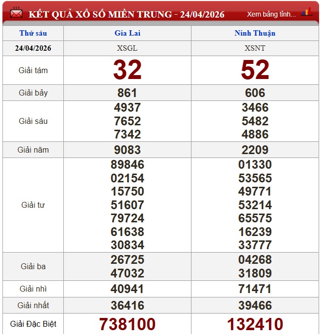 Kết quả xổ số miền Trung (XSMT) ngày 24/4
