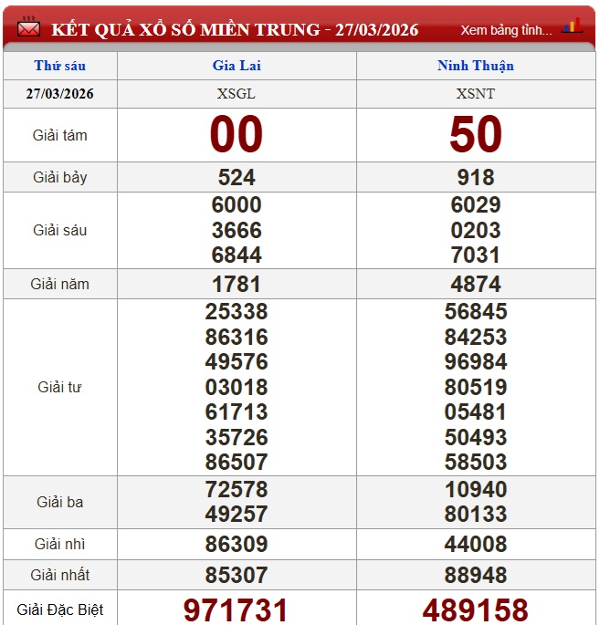Kết quả xổ số miền Trung ngày 27/3/2026