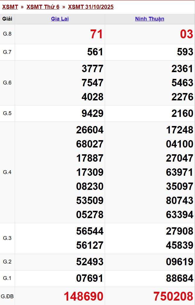 Kết quả xổ số miền Trung (XSMT) hôm nay ngày 31/10