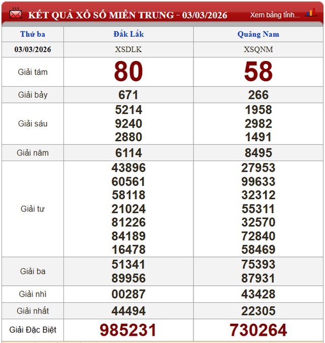 Kết quả xổ số miền Trung ngày 3/3/2026