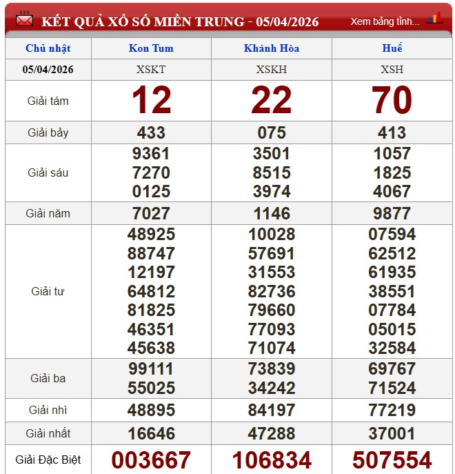 Kết quả xổ số miền Trung (XSMT) hôm nay ngày 5/4