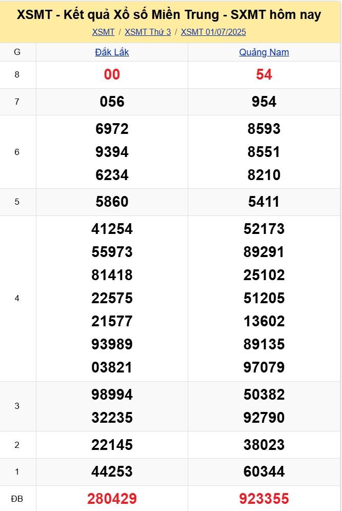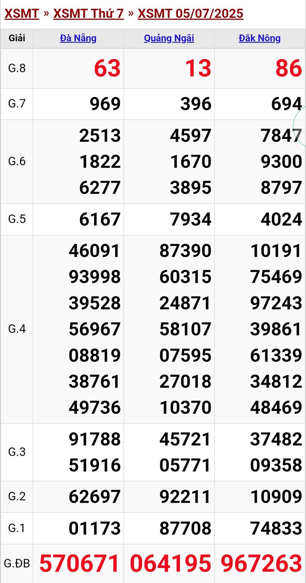 Kết quả xổ số miền Trung ngày 6/7/2025. KQXSMT 6/7