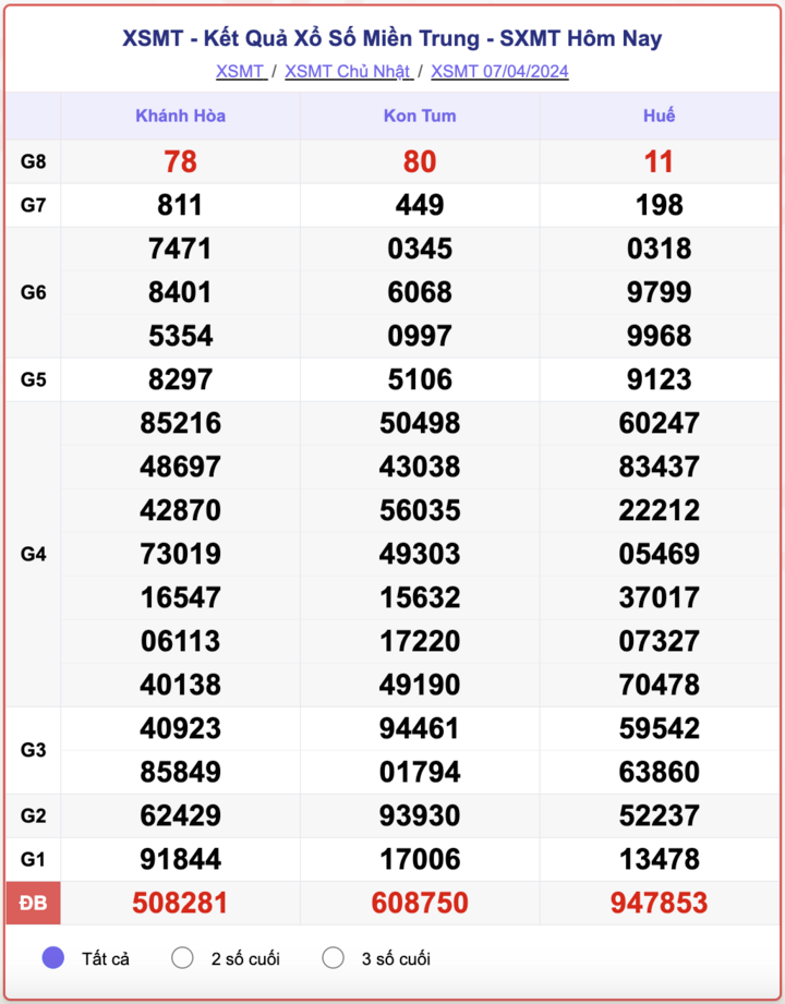 XSMT Chủ nhật, kết quả xổ số miền Trung ngày 7/4/2024