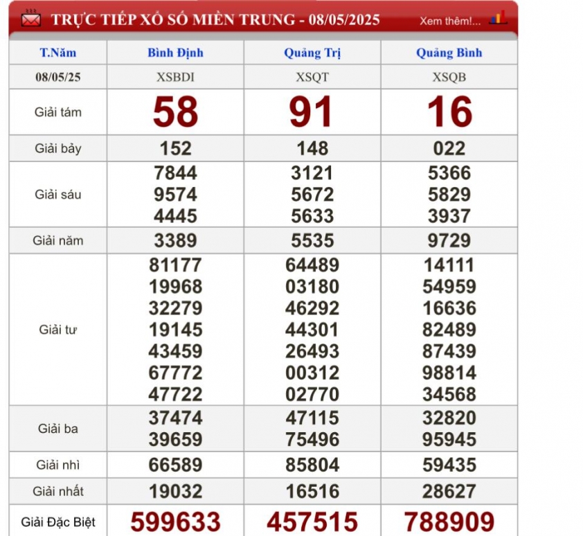 Kết quả xổ số miền Trung (XSMT) ngày 8/5