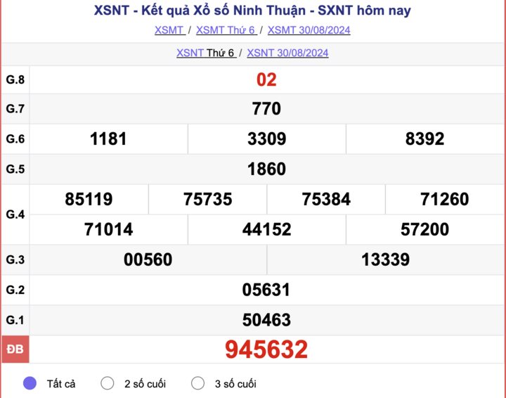 XSNT 13/9. Kết quả xổ số Ninh Thuận hôm nay - XSNT thứ Sáu ngày 13/9/2024 sẽ được cập nhật nhanh chóng và chính xác nhất. Kết quả các giải thưởng XSNT ngày 13/9/2024 sẽ được cập nhật liên tục từ giải nhất cho đến giải tám, cuối cùng là giải đặc biệt.