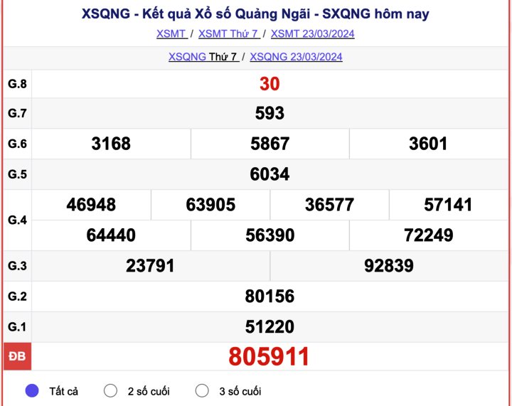 - Kết quả XSQNG ngày 23/3/2024