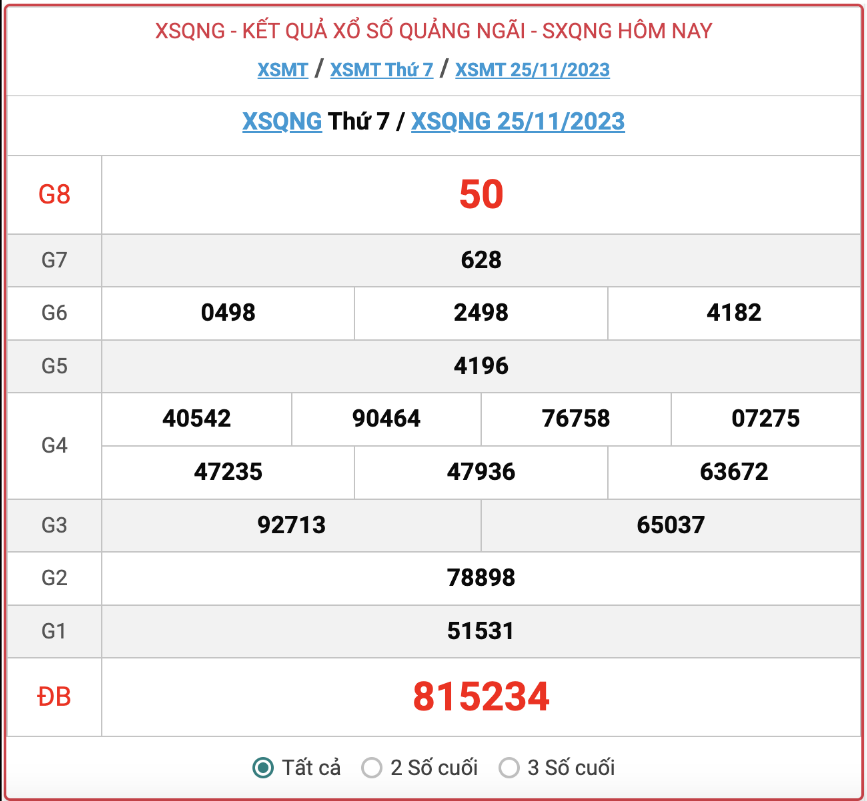 XSQNG thứ 7, kết quả xổ số Quảng Ngãi ngày 25/11/2023