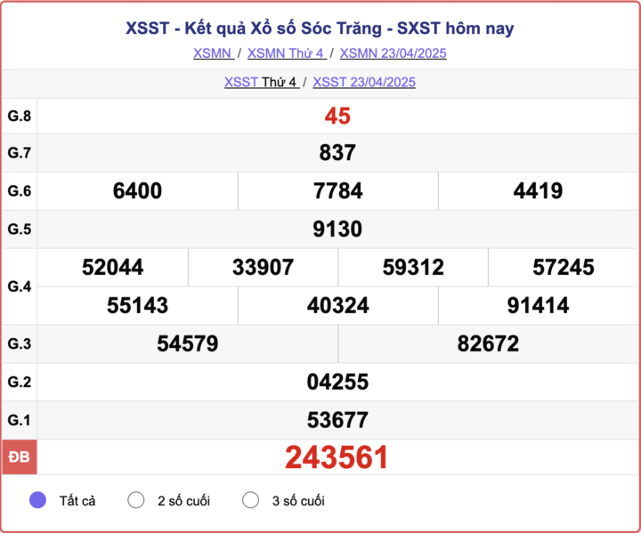 XSST 23/4, kết quả xổ số Sóc Trăng hôm nay 23/4/2025.