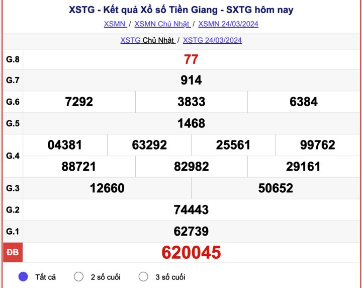- Kết quả XSTG ngày 24/3/2024