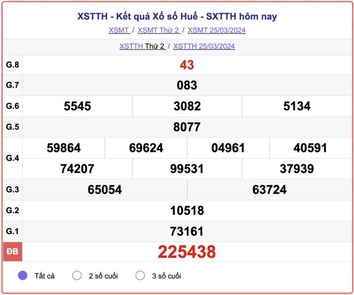 XSTTH thứ 2, kết quả xổ số Thừa Thiên Huế ngày 25/3/2024