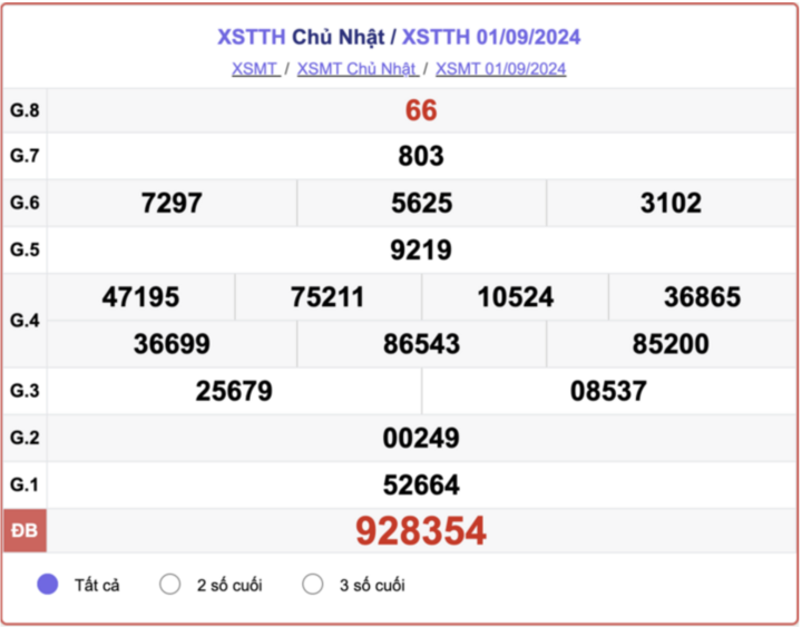 Theo dõi kết quả xổ số Thừa Thiên Huế ngày 15/9/2024, XSTTH hôm nay trên PHUONGTRUONGAN để cập nhật Siêu nhanh kết quả sớm nhất.