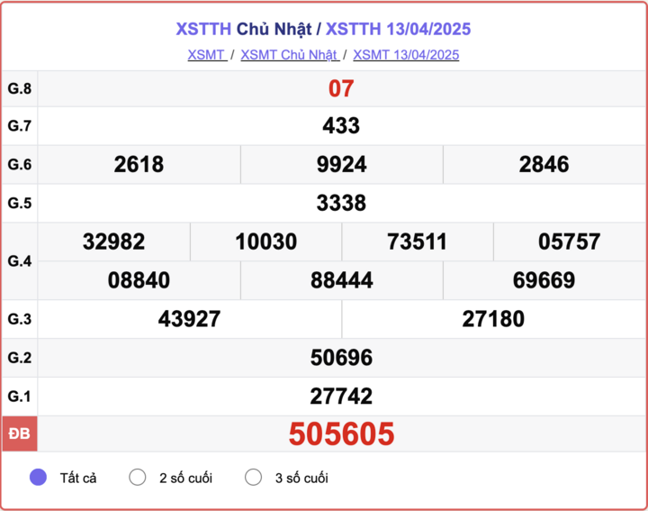 XSTTH 13/4, kết quả xổ số Huế hôm nay 13/4/2025.
