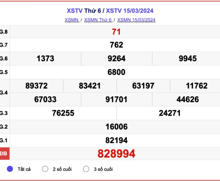 - Kết quả XSTV ngày 15/3/2024