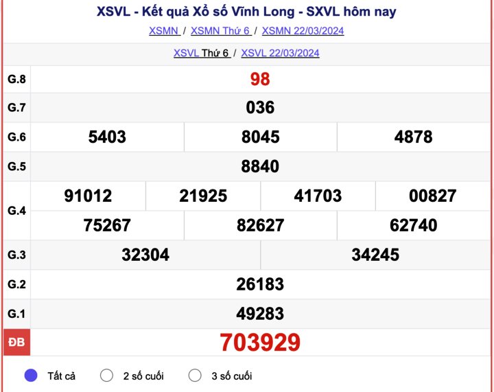 Theo dõi kết quả xổ số Vĩnh Long 29/3/2024, XSVL hôm nay 29/3 sớm nhất trên phuongtruongan.vn để không bỏ lỡ thời gian nhận thưởng.