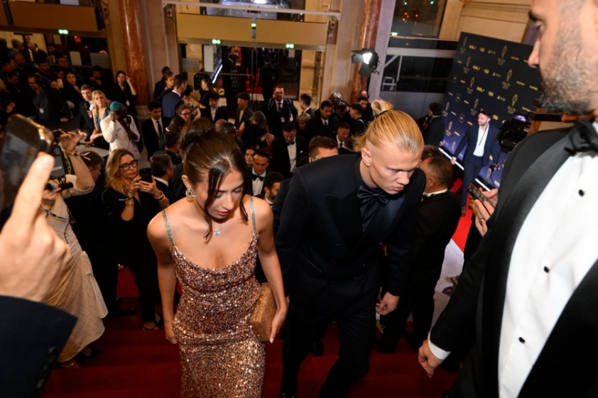 Ứng cử viên hàng đầu cho giải thưởng Quả bóng vàng 2023 - Erling Haaland đã có mặt tại buổi lễ cùng các đồng đội ở Man City.