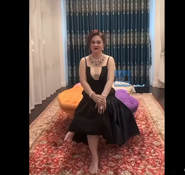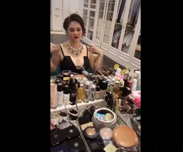 Mới đây, bà xã ông Dũng Lò Vôi trở thành tâm điểm bàn tán vì màn xuất hiện bị đánh giá là phản cảm trên Facebook. Cụ thể, cách đây không lâu, những đoạn clip bà Nguyễn Phương Hằng diện váy hai dây trễ nải, trang điểm kỹ càng, diện bộ trang sức đắt đỏ được chia sẻ rầm rộ. Điều khiến cư dân mạng chú ý đầu tiên là phần váy được khoét sâu, để lộ hơn một nửa vòng 1 của nữ doanh nhân. Không khó để thấy đôi “gò bồng đảo” căng đầy, kích thước lớn của bà Hằng.