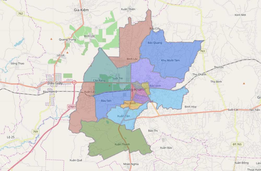 | Huyện Xuân Lộc | 724,32 | 227.860 | 1 thị trấn, 14 xã | 1991 |