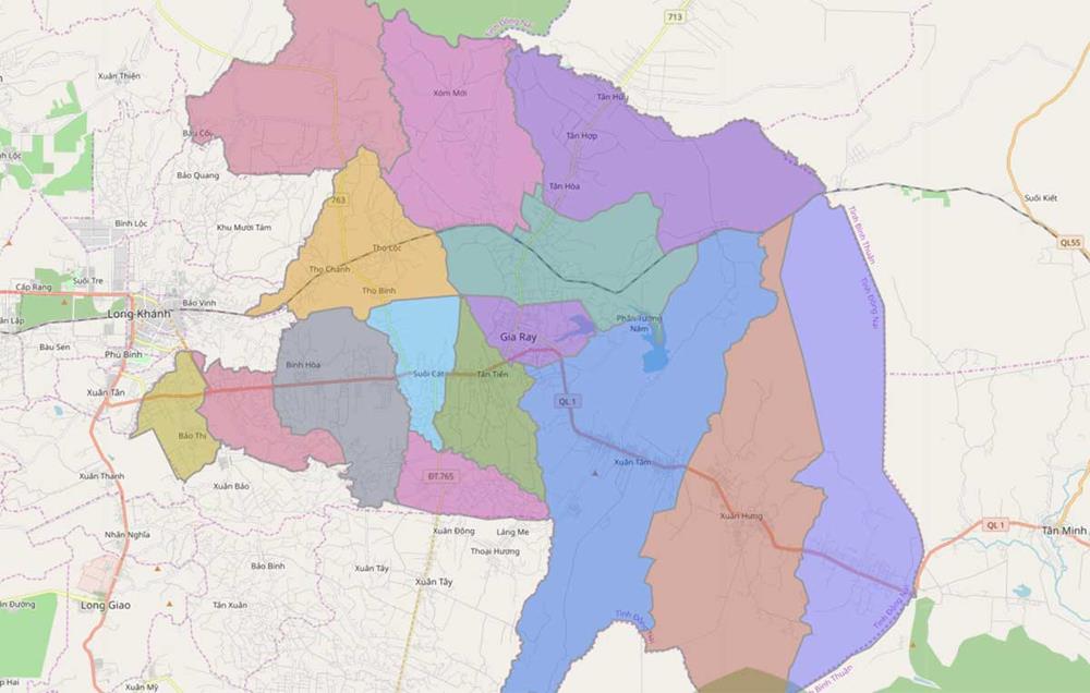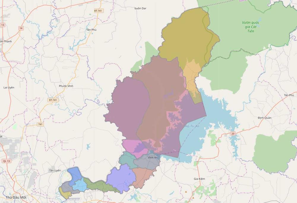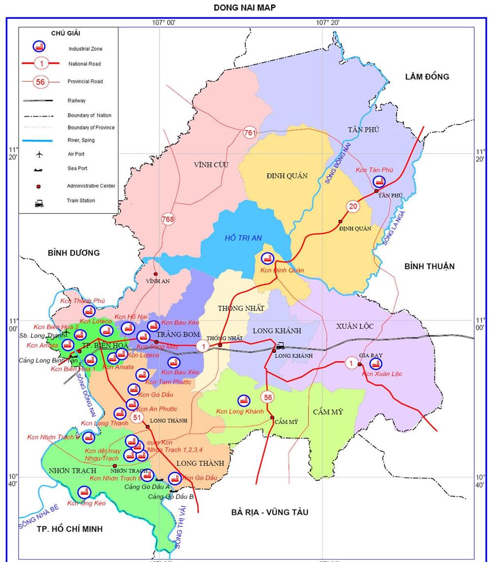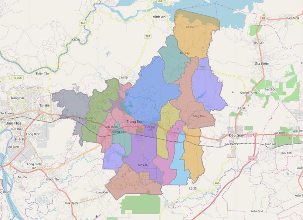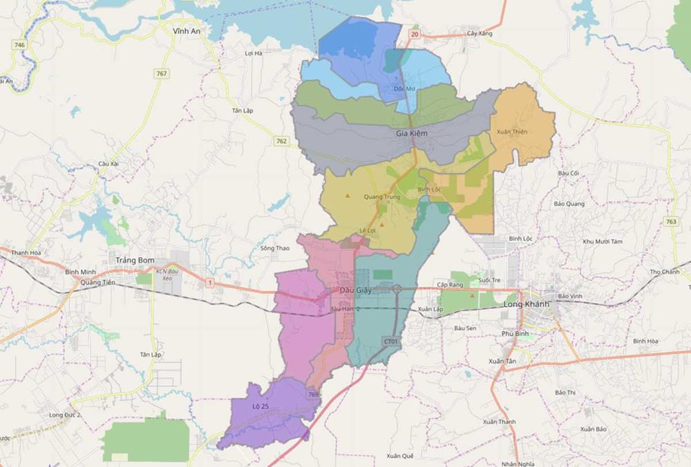 Bản đồ vị trí các thành phố, huyện, xã trên địa bàn tỉnh Đồng Nai