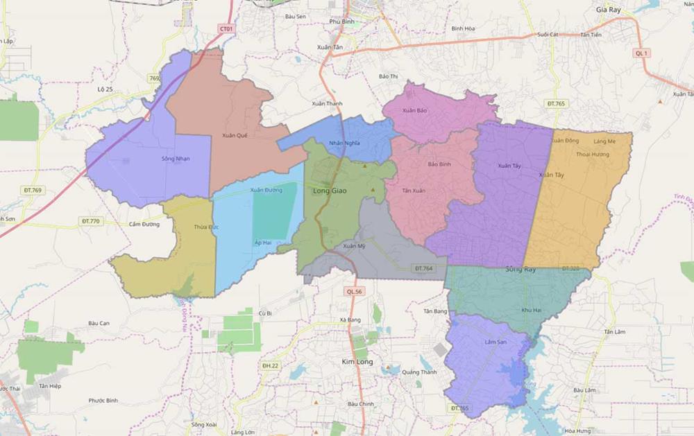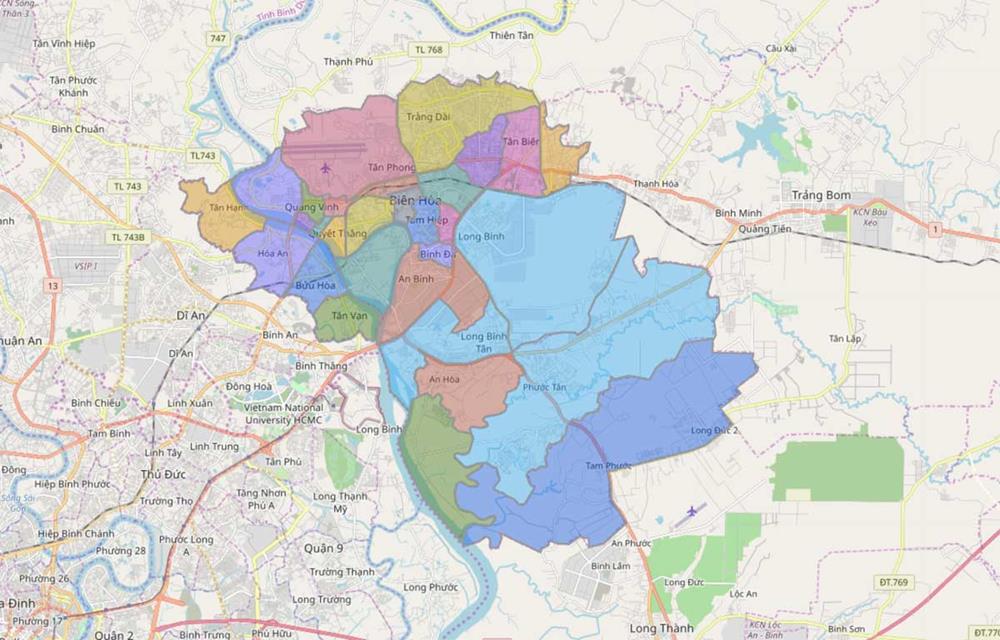 Bản đồ tỉnh Đồng Nai ở trên nền tảng Open Street Map
