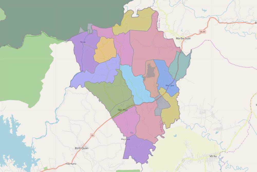 | Huyện Tân Phú | 774,92 | 190.670 | 1 thị trấn, 17 xã | 1991 |