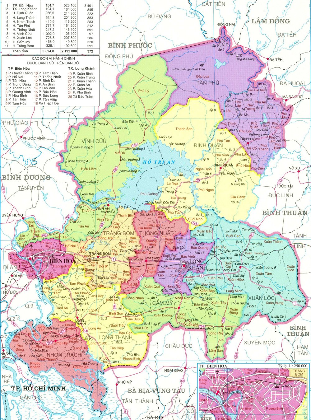 Bản đồ hành chính tỉnh Đồng Nai khổ lớn