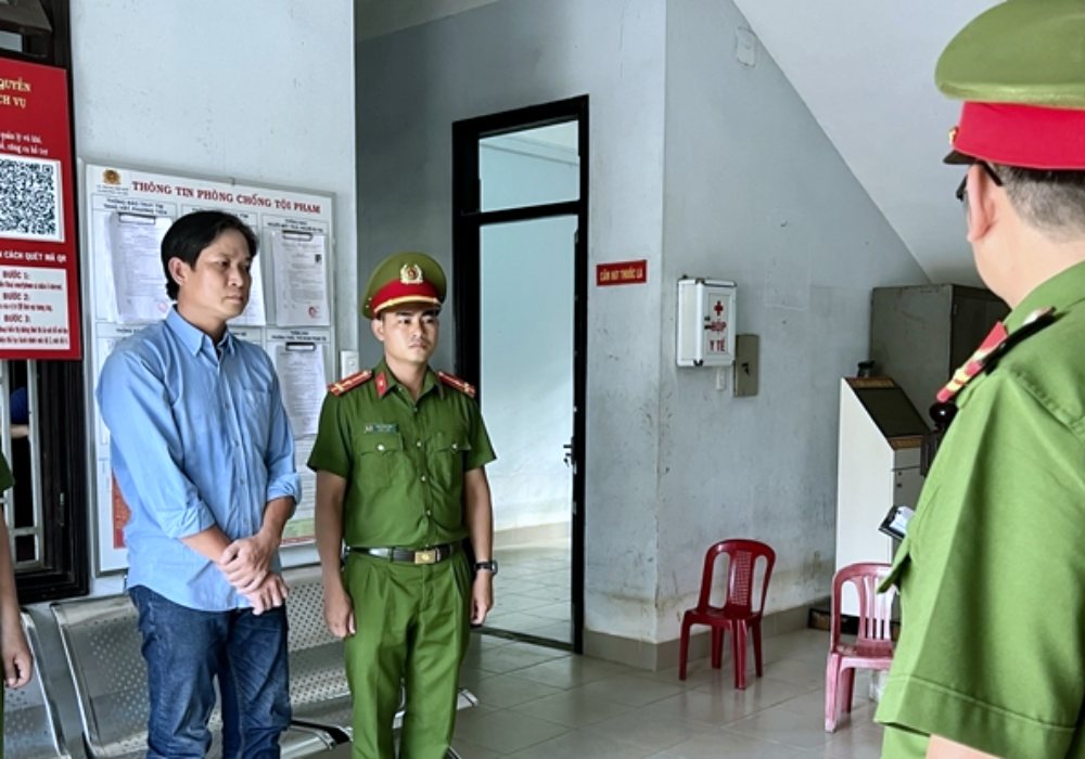 Lực lượng công an đang đọc các quyết định khởi tố vụ án, lệnh bắt tạm giam đối với Phạm Minh Tuấn.