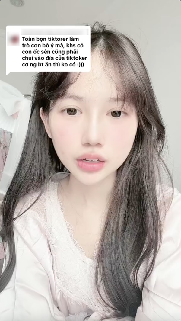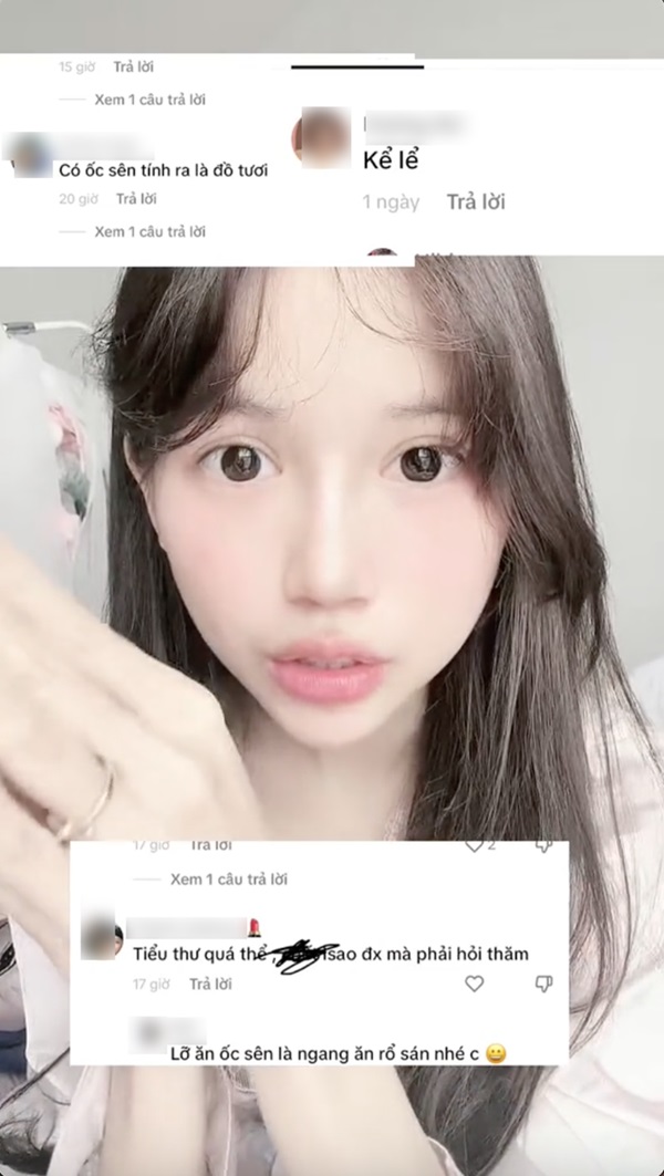 Bên cạnh đó, còn có rất nhiều bình luận nói rằng ốc sên là "đồ tươi", ăn vào không sao, và cho rằng Pun "tiểu thư quá"... Nữ TikToker đáp lại, hỏi ngược những người bình luận: "Bạn có muốn ăn không". Ngoài ra, cô cũng bày tỏ quan điểm rằng ăn ốc sên sống như vậy sẽ rất nhiều sán, dù trên thế giới có nơi sử dụng ốc sên nhưng đa số để làm đẹp...