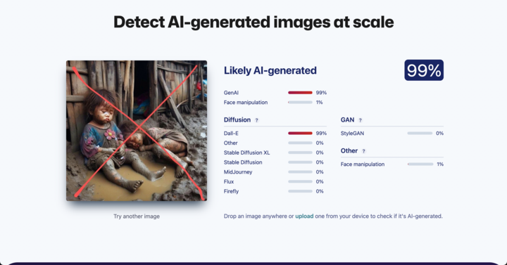 Công cụ sightengine.com có khả năng xác định AI khá mạnh.