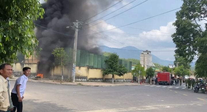 Hình ảnh từ người dân ghi lại cho thấy ngọn lửa bùng phát nhanh, cột khói đen cuồn cuộn bốc lên cao.