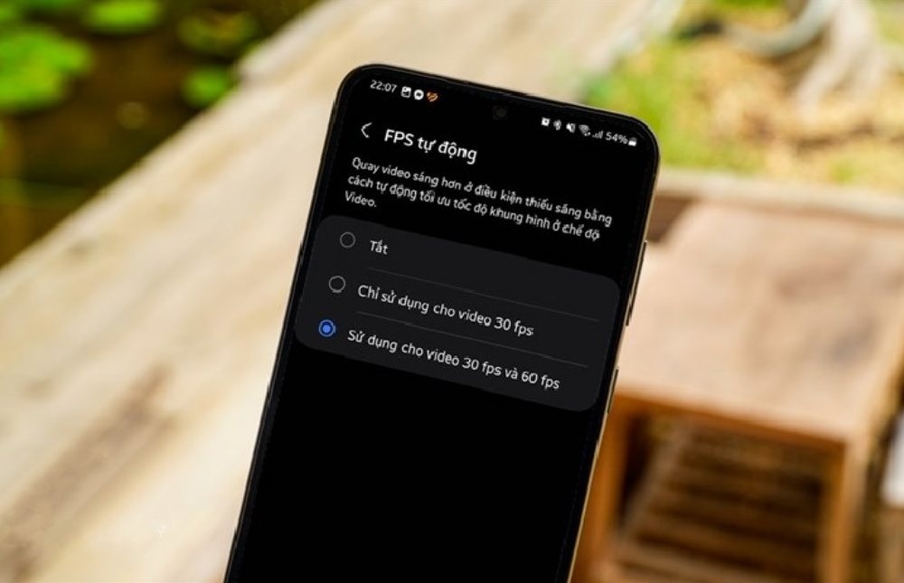 Bước 2: Ngay lập tức sẽ có 3 tùy chọn FPS tự động cho video của bạn là Tắt khi bạn không muốn sử dụng tính năng này. Chỉ sử dụng cho video 30 FPS tức là khi bạn chọn chế độ quay video ở mốc 30 FPS thì tính năng này sẽ được kích hoạt. Và tương tự với mục còn lại Sử dụng cho videp 30 FPS và 60 FPS.