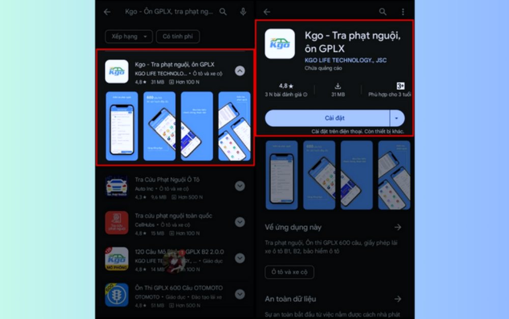 Cách tra cứu phạt nguội trên ứng dụng Kgo