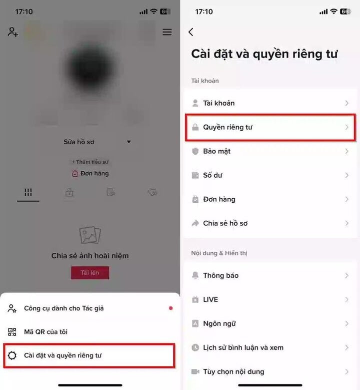 ✅ Bước 2: Trong giao diện của mục Cài đặt và quyền riêng tư, nhấn chọn Quyền riêng tư để điều chỉnh theo ý muốn > Chọn vào mục Dịch vụ vị trí để xem thêm về tính năng vị trí trên ứng dụng TikTok.