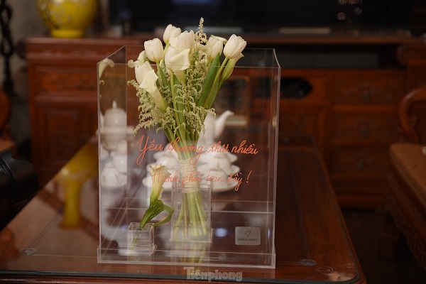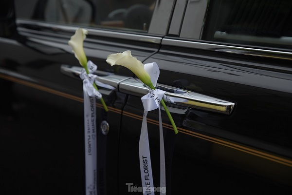 Hoa trang trí xe dâu được nhập khẩu từ Mỹ và Hà Lan, trị giá khoảng 50 triệu đồng.