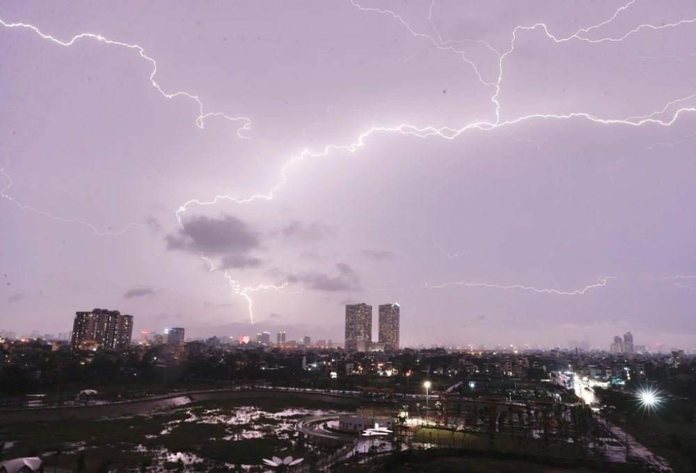 Cảnh báo mưa lớn kèm theo sấm, sét. Ảnh: Minh Quyết - TTXVN