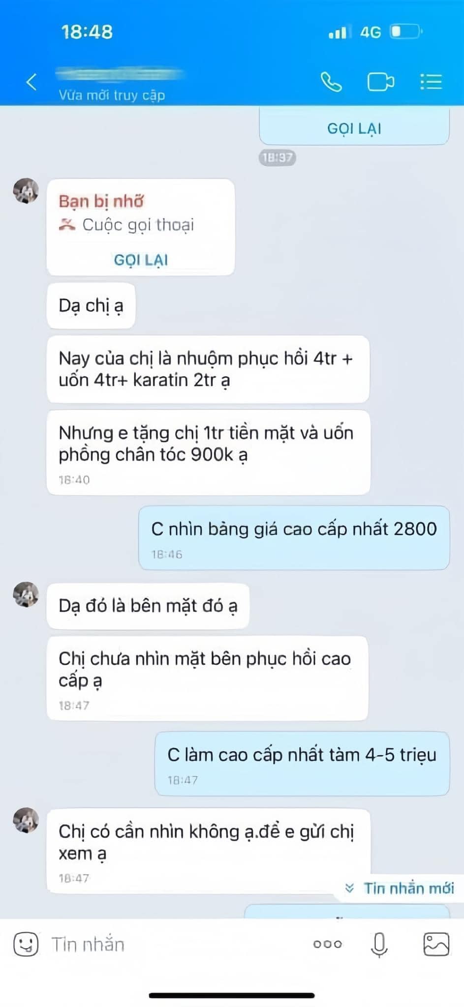 Cụ thể, người phụ nữ cho biết chị đi làm tóc tại một cửa tiệm gần nhà tại Quảng Ninh và có mong muốn nhuộm tóc kèm uốn xoăn. Khi nhìn bảng giá, với mức giá từ 600-3 triệu, chị đã không nói rõ là chọn mức giá bao nhiêu tiền mà nói chung chung là "chị chọn mức cao nhất".