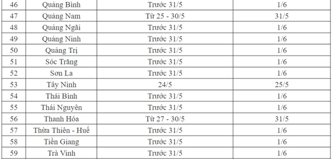 Dưới đây là lịch nghỉ hè của học sinh tại 63 tỉnh, thành phố.