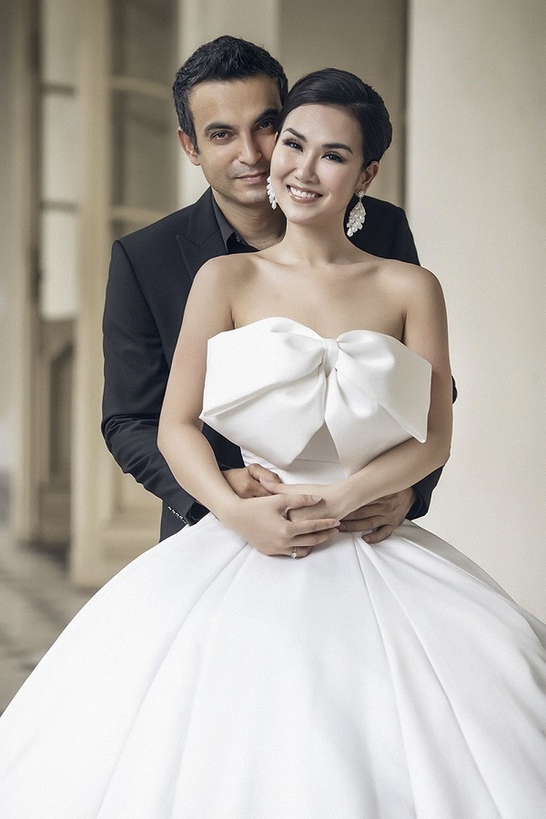 Nữ ca sĩ và chồng gặp nhau trong một buổi tiệc của người bạn thân. Khi ấy, cô đã bị thu hút bởi sự bản lĩnh, chững chạc của người đối diện. Cả hai tiến đến đám cưới sau một năm tìm hiểu.