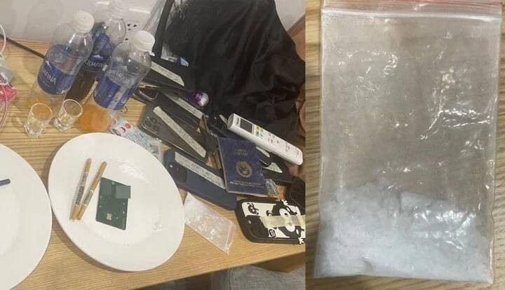 Tại thời điểm kiểm tra, cơ quan công an phát hiện và thu giữ ma túy loại ketamine, bộ dụng cụ sử dụng ma túy, 3 chai ma túy dạng “nước vui” cùng một số tang, vật chứng liên quan.