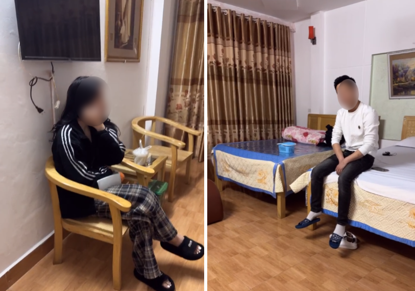 Người vợ bức xúc lớn tiếng hỏi ngược lại nữ nhân viên rằng "có người yêu sao vẫn rủ nhau vào nhà nghỉ", đồng thời cho biết sẽ livestream đăng lên mạng xã hội. Trước hành động của vợ, người chồng bình thản nói: "Đăng lên sẽ mất tất thôi".