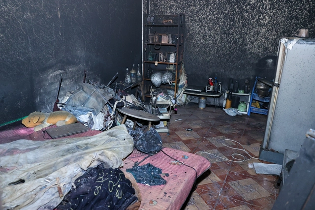 Đồ đạc trong một căn phòng trọ bị khói đen bao trùm, những bức tường bị nổ do sức nóng của ngọn lửa- Ảnh: Cổng TTĐT Chính phủ