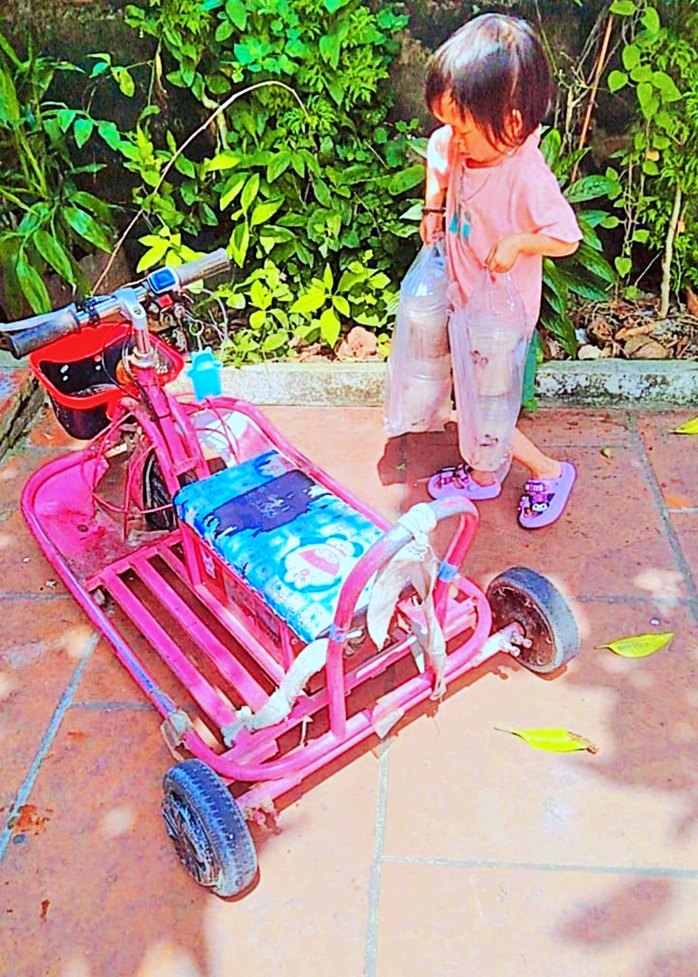 Đặc biệt là, để chủ động việc đi lại và kinh doanh, Hằng đặt mua chiếc xe điện phù hợp với vóc dáng của mình, có chỗ thồ hàng. Em dùng chiếc xe này để đi đó đi đây cho khuây khỏa, giao lưu với những người khác.