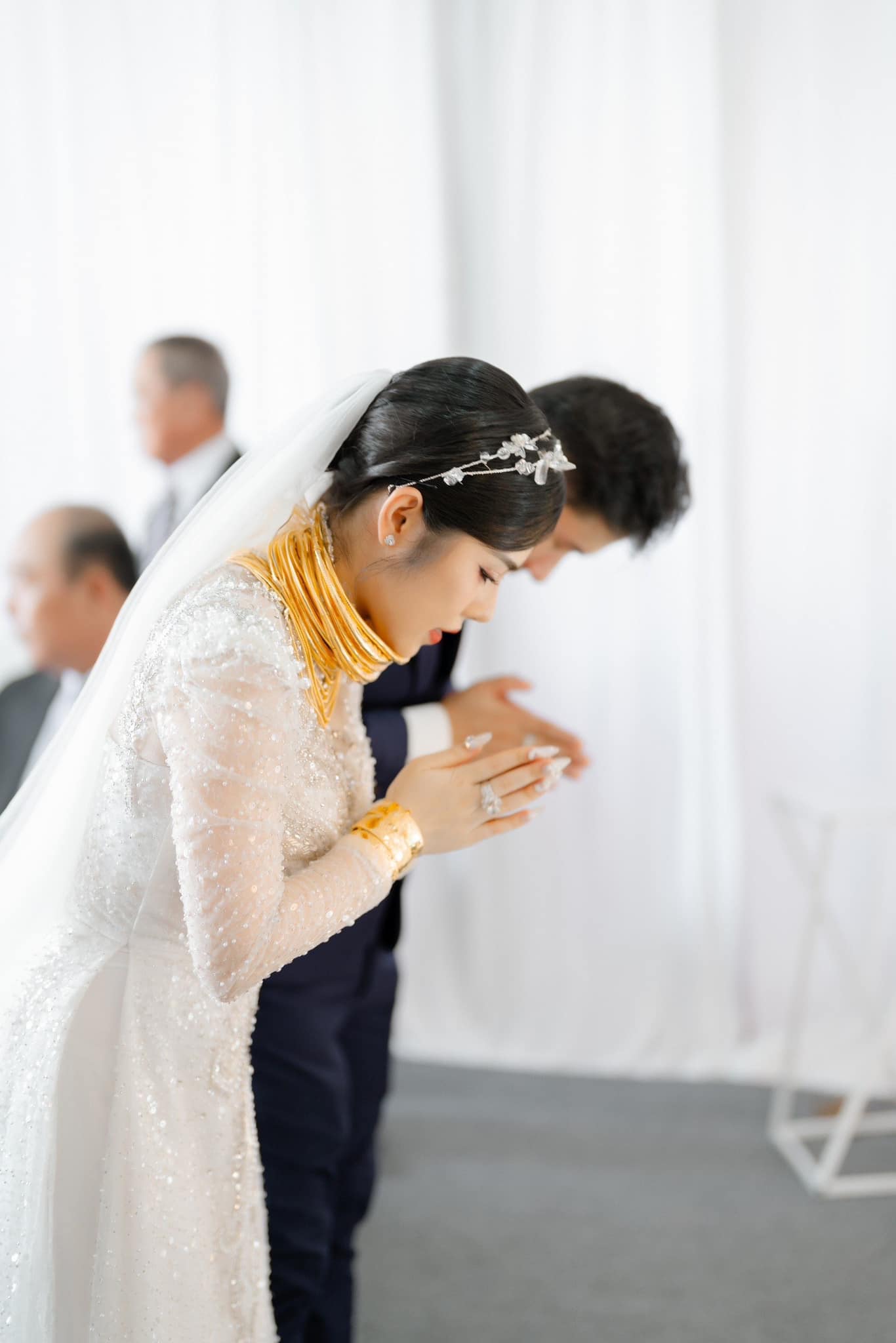 Cô dâu Kim Phương đeo vàng đến mức “trĩu cổ”.