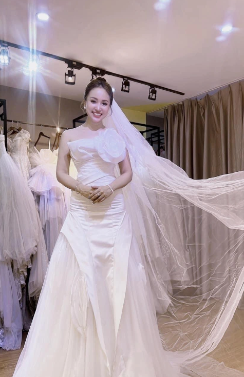 Vân Hugo thử váy cưới cho hôn lễ lần 2 (Ảnh: FBNV).