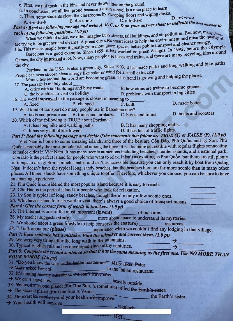 Đáp án đề thi vào lớp 10 năm 2025 môn Tiếng Anh tại Bình Định. Nguồn ảnh: tuyensinh247