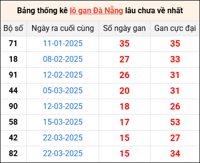 Bảng thống kê lô gan Đà Nẵng lâu về nhất 17/5/2025